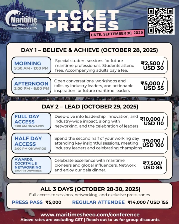 *Please note that due to our presence in India Maritime Week, our guest list is highly curated and vetted. We reserve the right to accept or deny attendees at any point up till the conference.